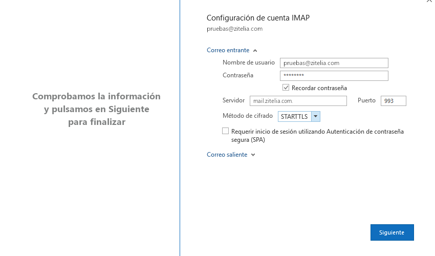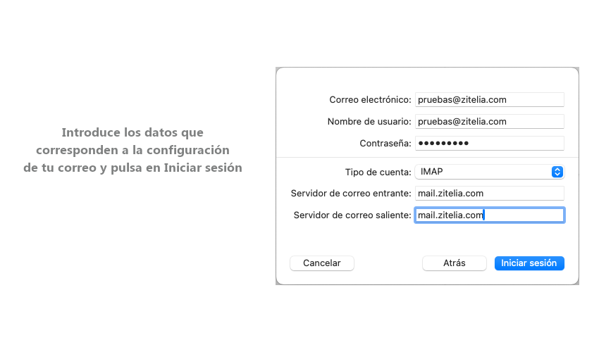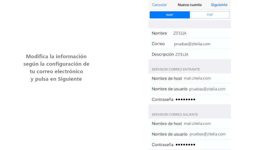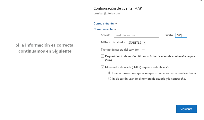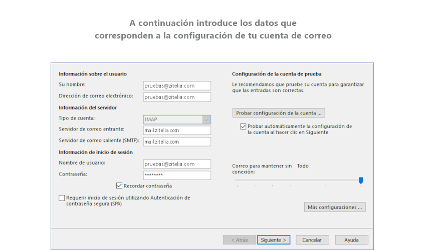 Si eres cliente de Zitelia, tus datos de configuración serán los siguientes: