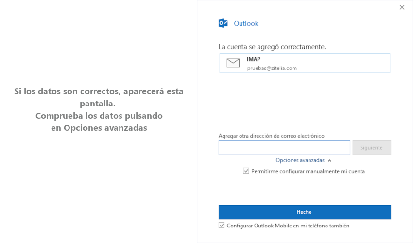 Además de las opciones que te ofrecíamos antes, también tienes otras posibilidades de configuración de correo: