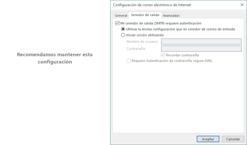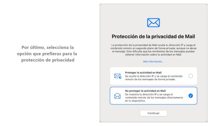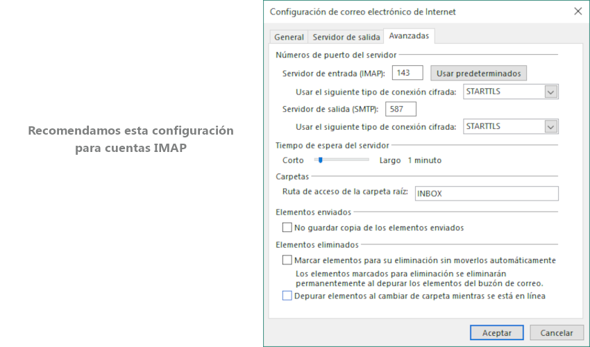 Ten en cuenta esta información a la hora de elegir tu configuración. Recuerda que esta selección deberás hacerla en cada uno de los dispositivos en los que configures tu buzón de correo electrónico.