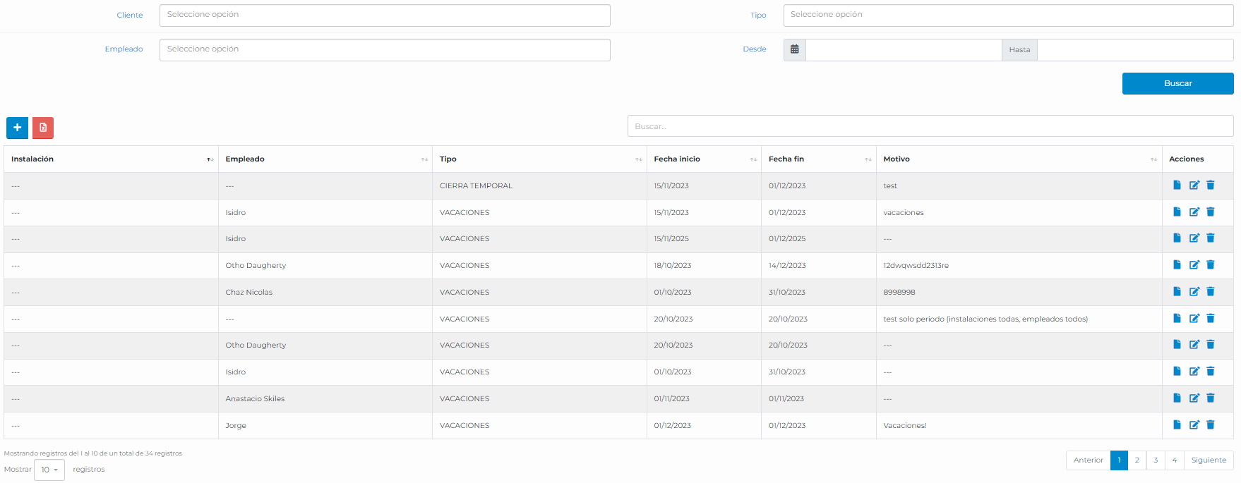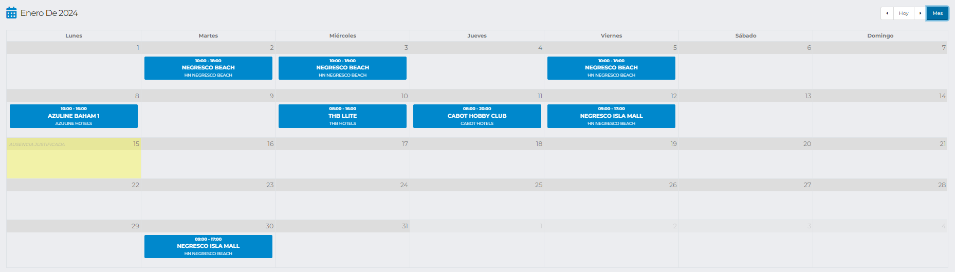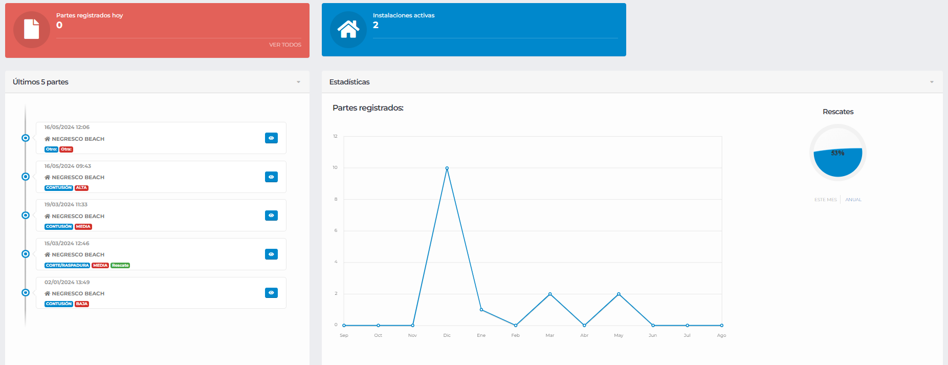 3. Un panel de control para los empleados, donde puede comprobar las instalaciones asignadas y otros datos de interés para la gestión de las jornadas, así como un punto de registro de las incidencias o parte de actuaciones registradas en las instalaciones.